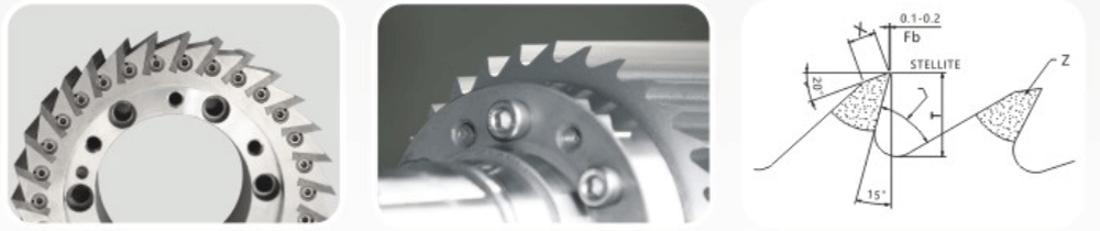 回轉(zhuǎn)切刀基體采用耐腐蝕不銹鋼材質(zhì),刀刃材料采用全進口STELLITE 12#鈷基合金,通過高科技數(shù)控等離子堆焊成型。從原材料的選擇、熱處理工藝控制、堆焊技術的優(yōu)化升級以及全部數(shù)控加工中心切削研磨,全部過程本公司內(nèi)部嚴格控制,確保每一把切刀高品質(zhì)要求。回轉(zhuǎn)切刀的性能技術參數(shù)指標及使用壽命完全等同進口產(chǎn)品。
